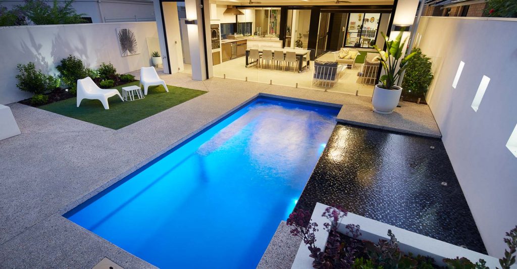 There are few things to consider if you are short on space for example, how big do you want your pool to be? Are you happy for the pool to take up the majority of your backyard? Or would you like to have a smaller pool and still have a grass area? As a general guide, the pool and the pool surrounds should occupy approximately 25% of the total outdoor area. This will allow space to create an entertaining area or a play area for the kids.