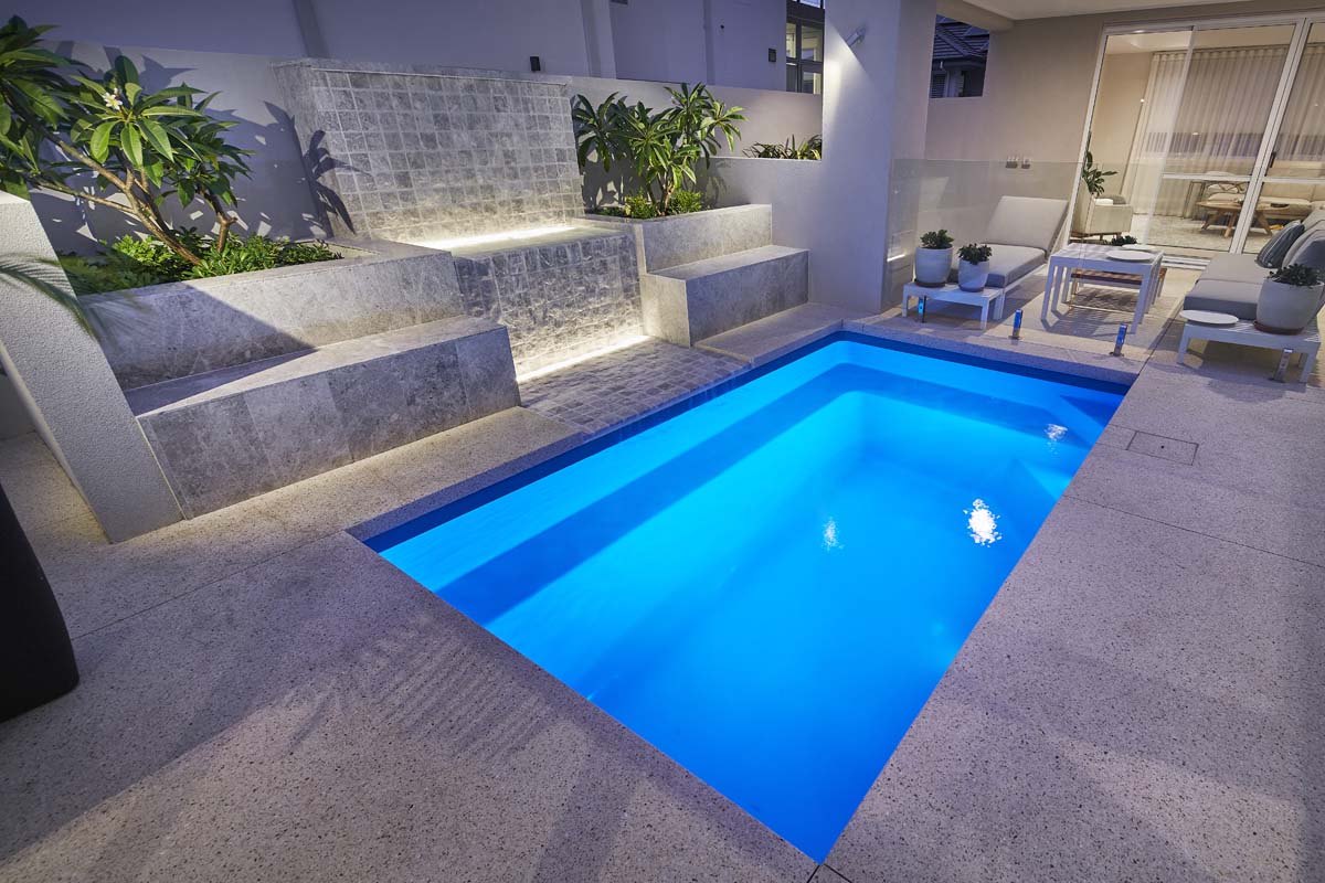 Designed to fit snugly into small areas where space is limited, or for those seeking a compact plunge pool for relaxation, the Billabong Plunge Slimline is the ultimate solution. With its dual entry steps, this pool can be positioned in virtually any space, while the lengthwise bench seating area extends across the pool and entry, providing a convenient spot for incorporating an open spa jet option, perfectly suited to this pool.