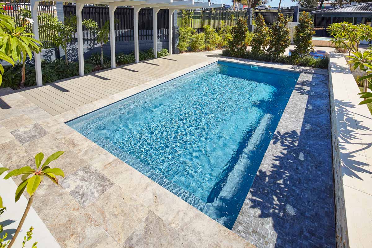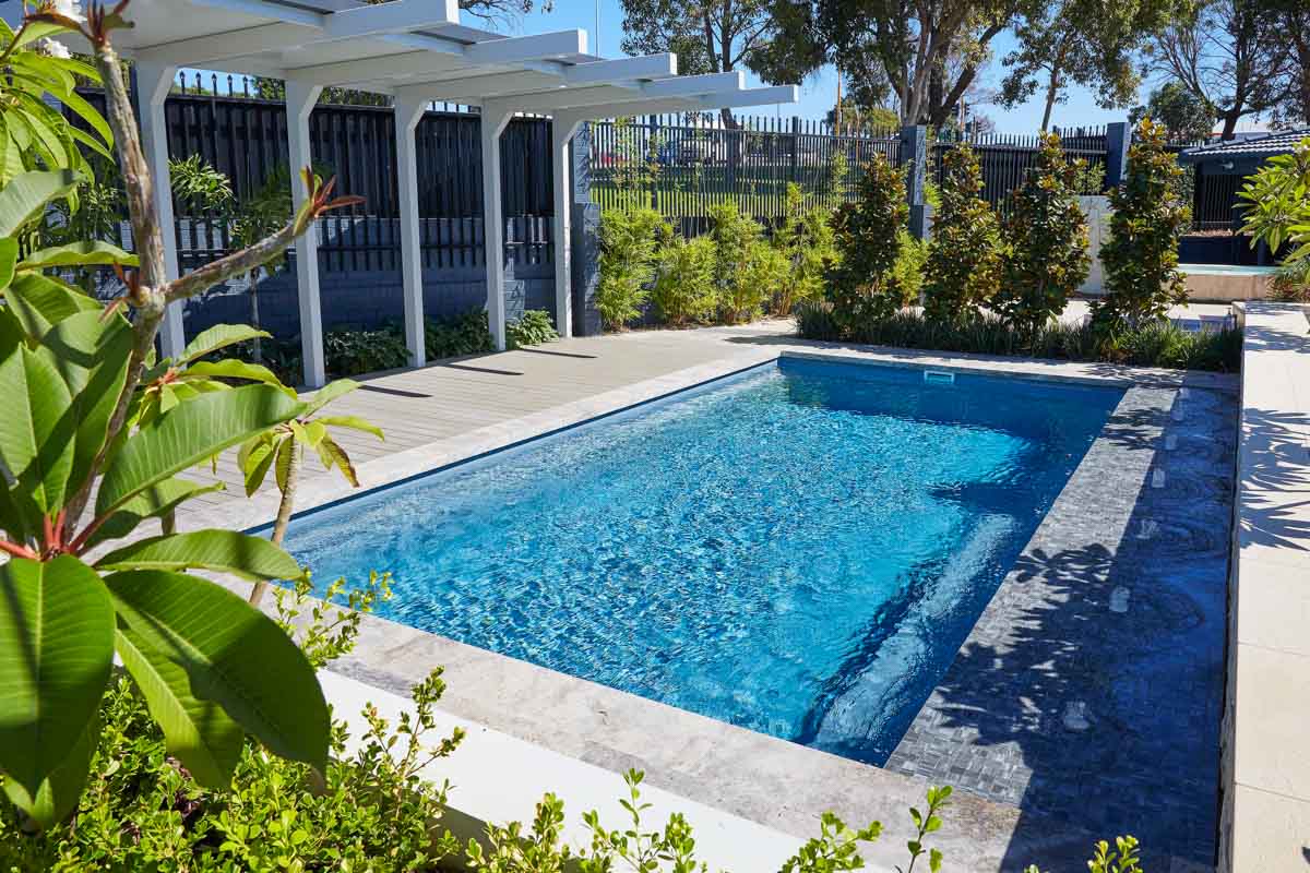Explore our captivating Billabong pool, presented in an expansive 7.2m x 3.8m configuration, beautifully enhanced by our exclusive Hampton Grey Shimmer pool colour. This iconic pool is celebrated for its generous dimensions and sophisticated design, making it a timeless choice among homeowners. Ideal for family fun, the Billabong pool offers plenty of room for swimming laps, leisurely dips, and playful moments. Its elegant aesthetics and spacious interior ensure it’s not just a pool, but a centerpiece for making lasting memories.