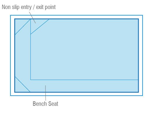 To further elevate comfort and relaxation, the Billabong Plunge Pool incorporates a bench seating area. This seating area extends lengthwise down the pool and extends across the entry area, creating a spacious and comfortable zone for individuals to sit and enjoy the pool. In addition to providing a resting place, the bench seating area is intelligently designed to accommodate the open spa jet option, which complements this pool exceptionally well. The incorporation of open spa jets adds an element of soothing hydrotherapy to the pool experience, allowing users to unwind and enjoy therapeutic water flow.