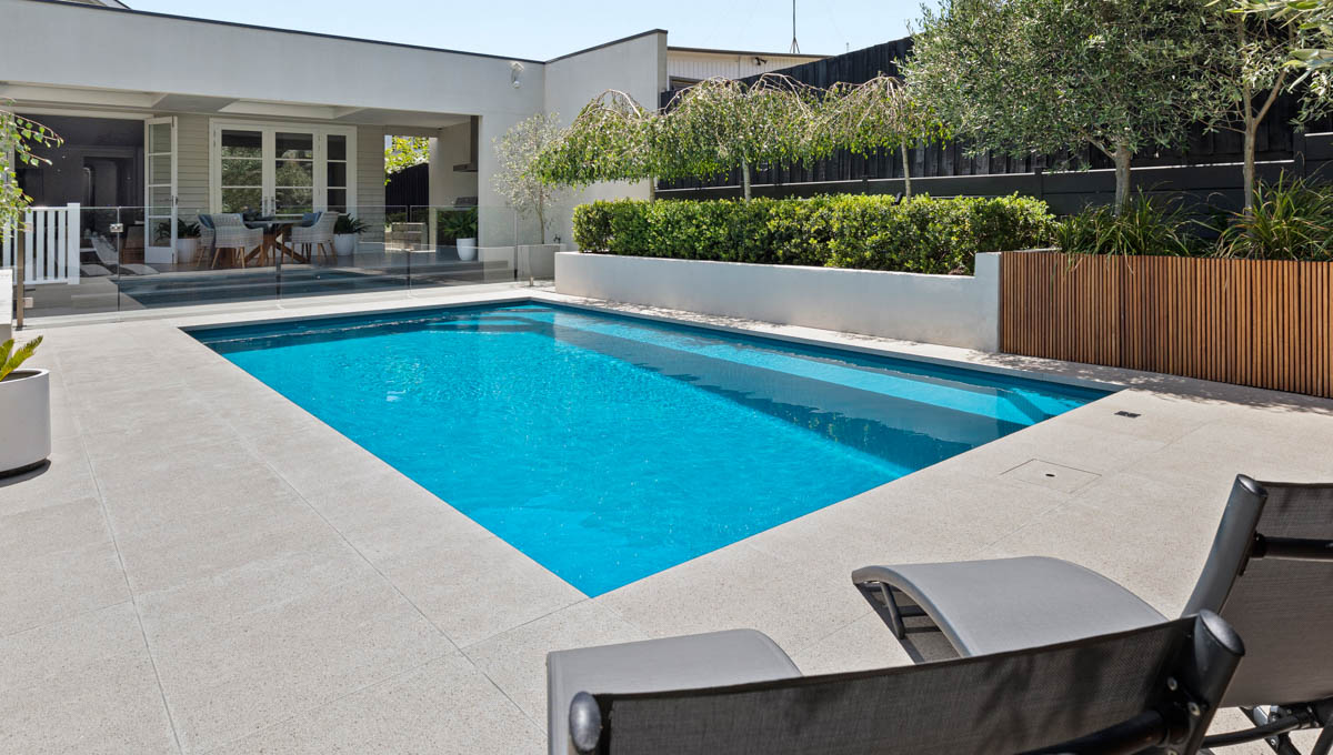 This Brampton 10.1m x 4.4m in Royal Jade Shimmer was recently installed at a home in Victoria. Sleek, modern and practical, the Brampton is designed for both relaxation and active use. Its clean lines and light-reflective finish make it a stunning focal point, while the size offers plenty of room for the family to swim, unwind and enjoy the outdoors—all from the comfort of home.