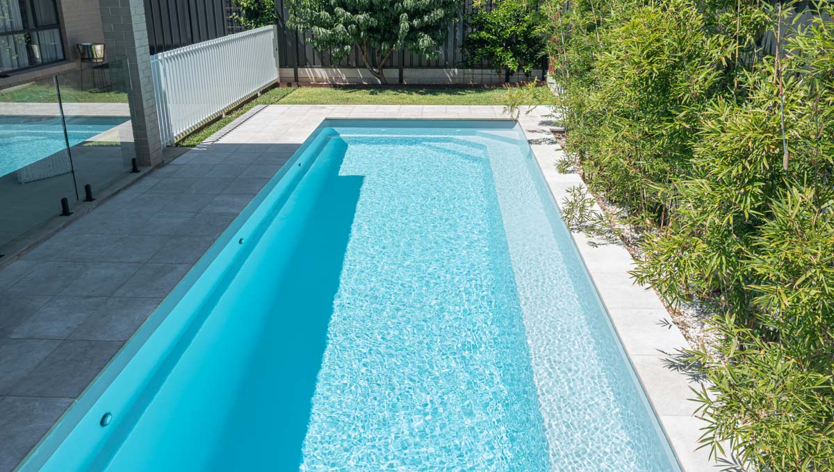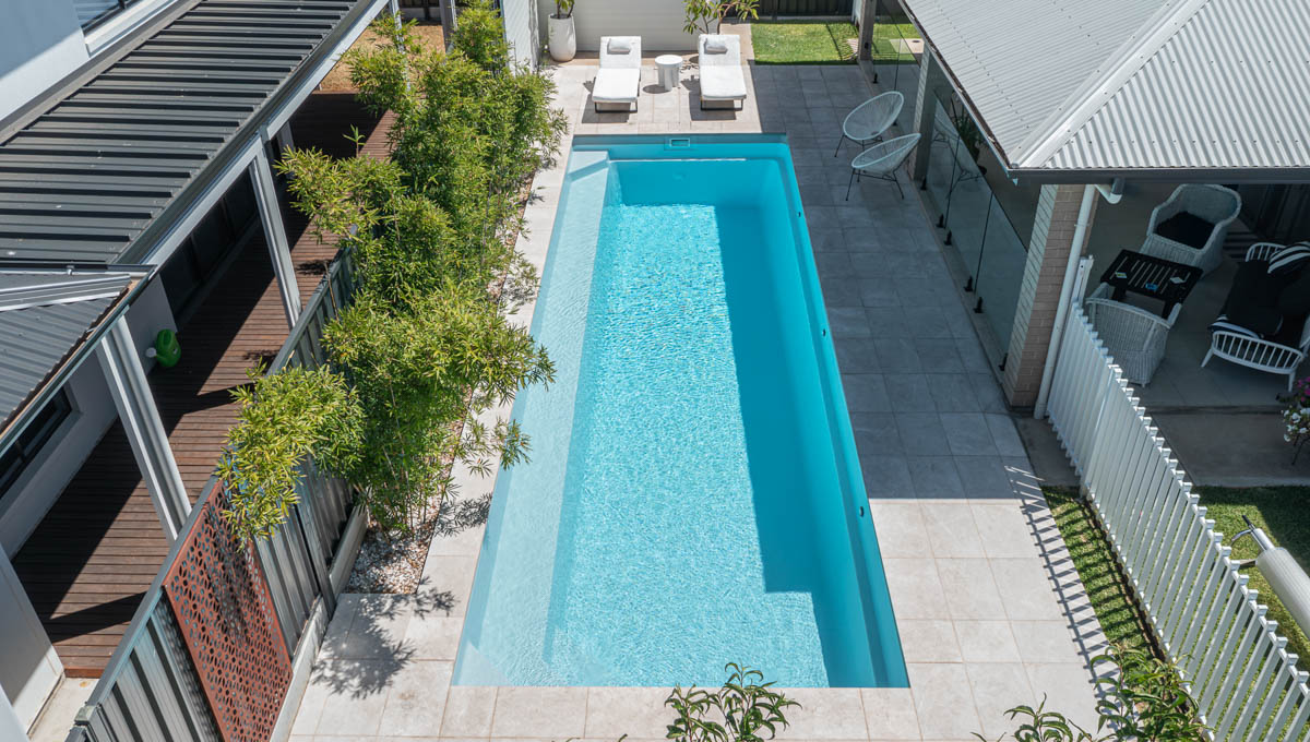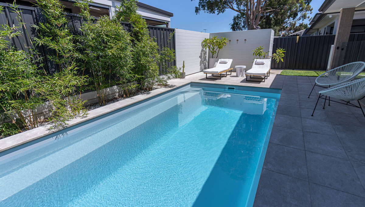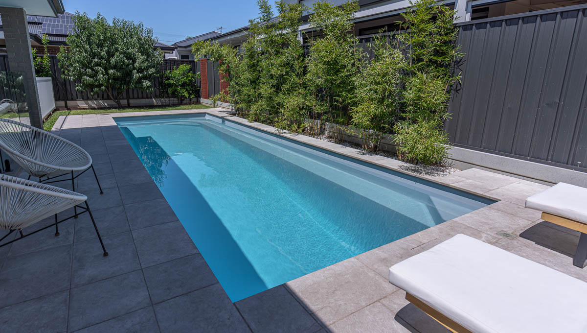 This stunning 10.1m x 3.5m Brampton Lap Pool in Silver Shimmer is a sleek and stylish addition to this Plympton Park backyard. Designed for both exercise and relaxation, the elongated shape makes it perfect for swimming laps, while the modern finish adds a touch of elegance. The Silver Shimmer interior creates a sparkling, reflective surface that enhances the water’s natural beauty, especially under the Australian sun. A practical yet visually striking choice, this Brampton pool blends seamlessly into the outdoor space, offering year-round enjoyment.