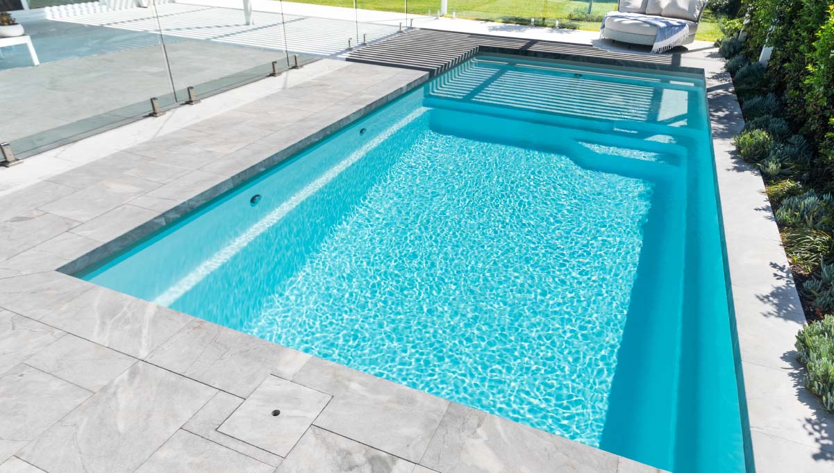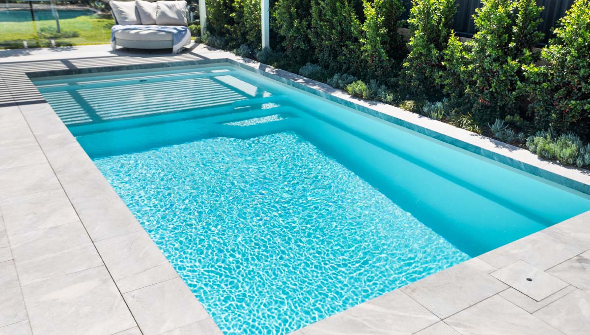 Designed with recessed steps, the Sunseeker Slimline ensures a seamless and uninterrupted swimming area, allowing you to fully immerse yourself in the joys of aquatic activities. As with all Barrier Reef Pool designs, the Sunseeker Slimline prioritizes safety, incorporating a dedicated ledge for junior swimmers, non-slip benches and steps, as well as smooth edges to provide peace of mind for the entire family.