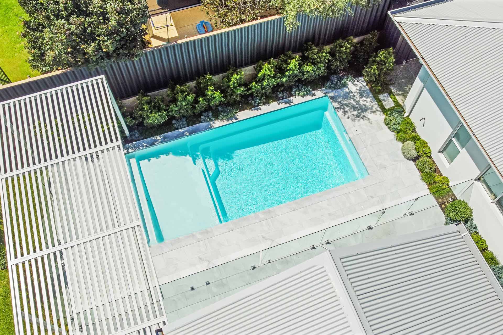 As with all Barrier Reef Pool designs, the Sunseeker Series incorporates the safety ledge for our junior swimmers, non-slip benches and steps, smooth edges, and our vibrant range of shimmer colours.