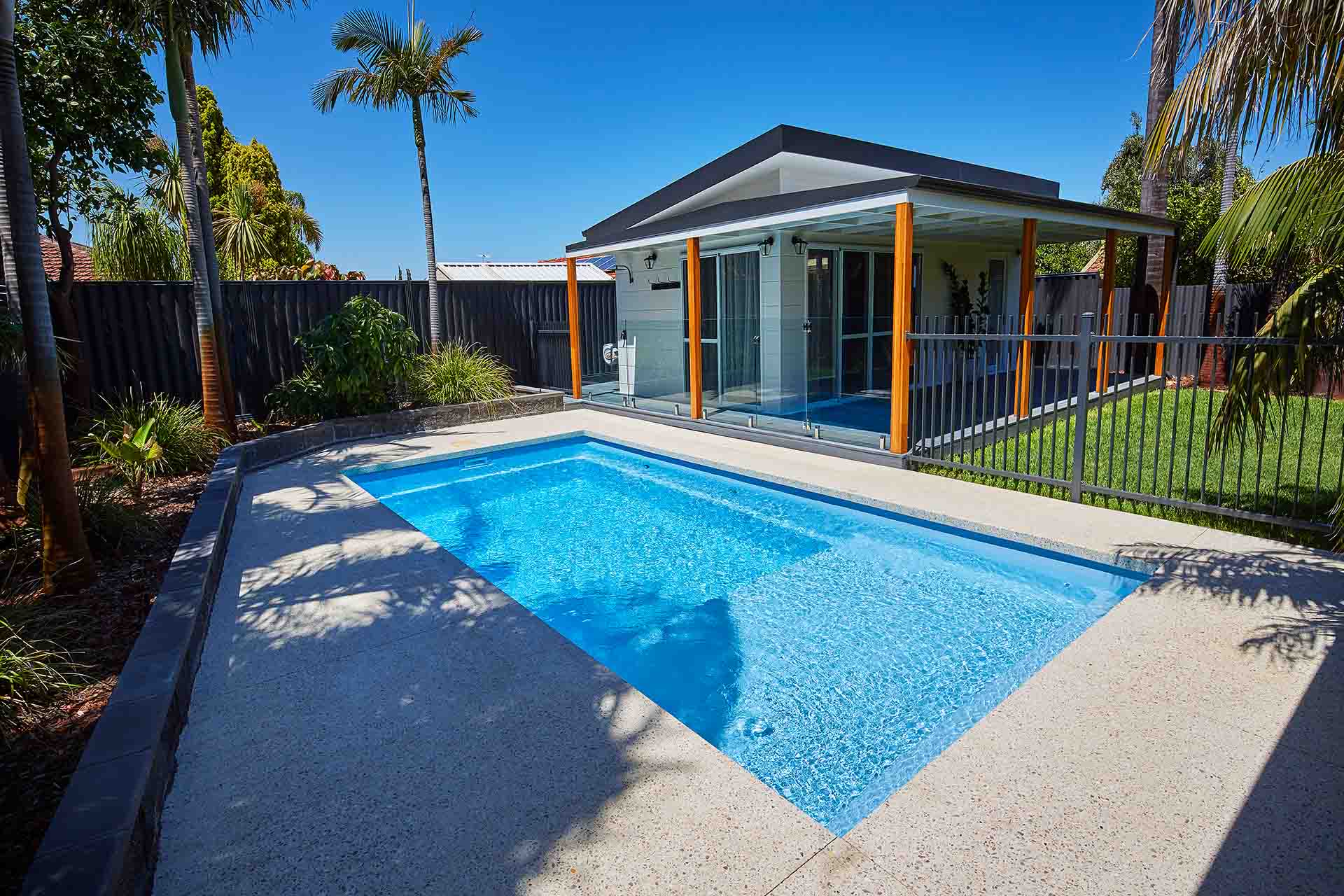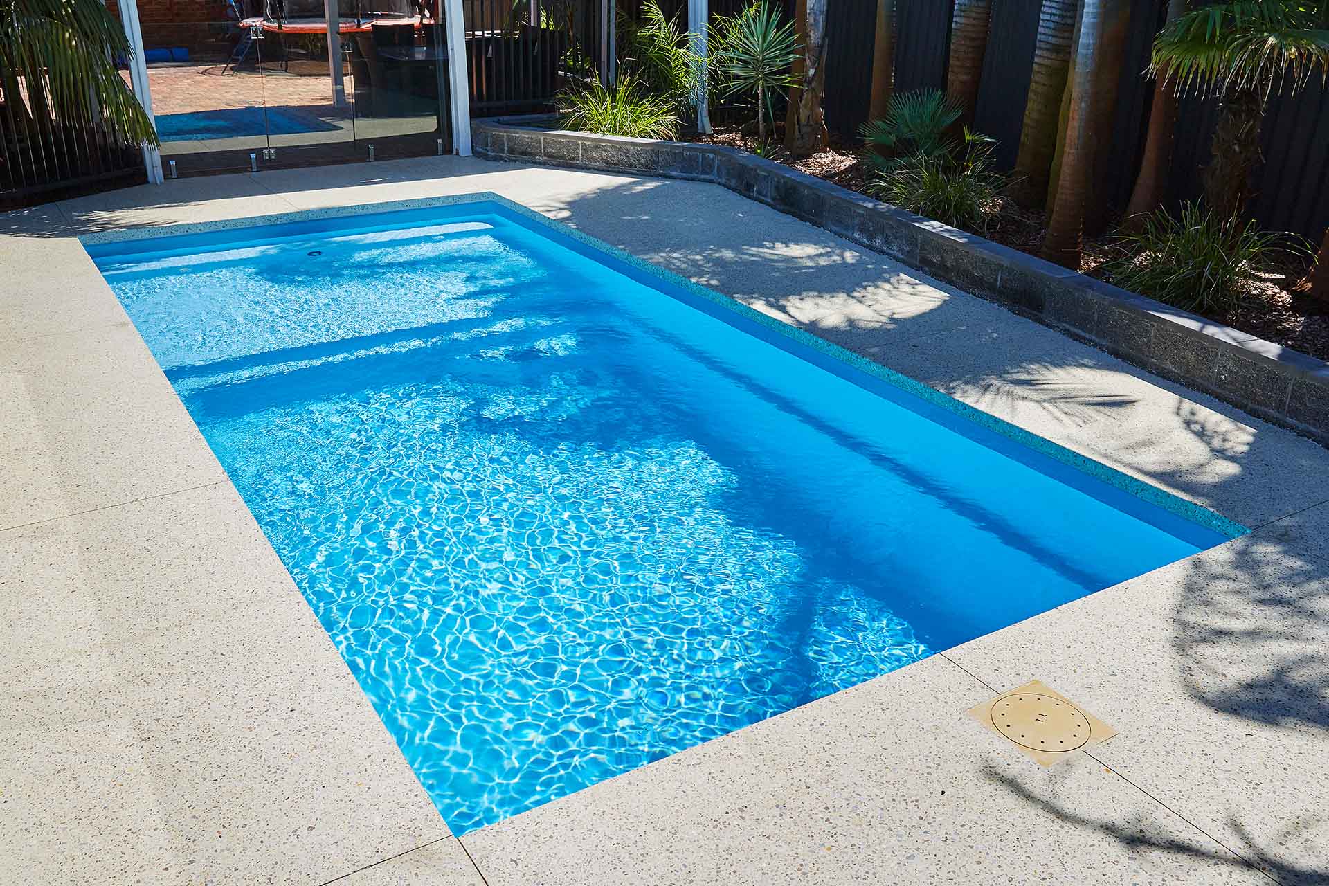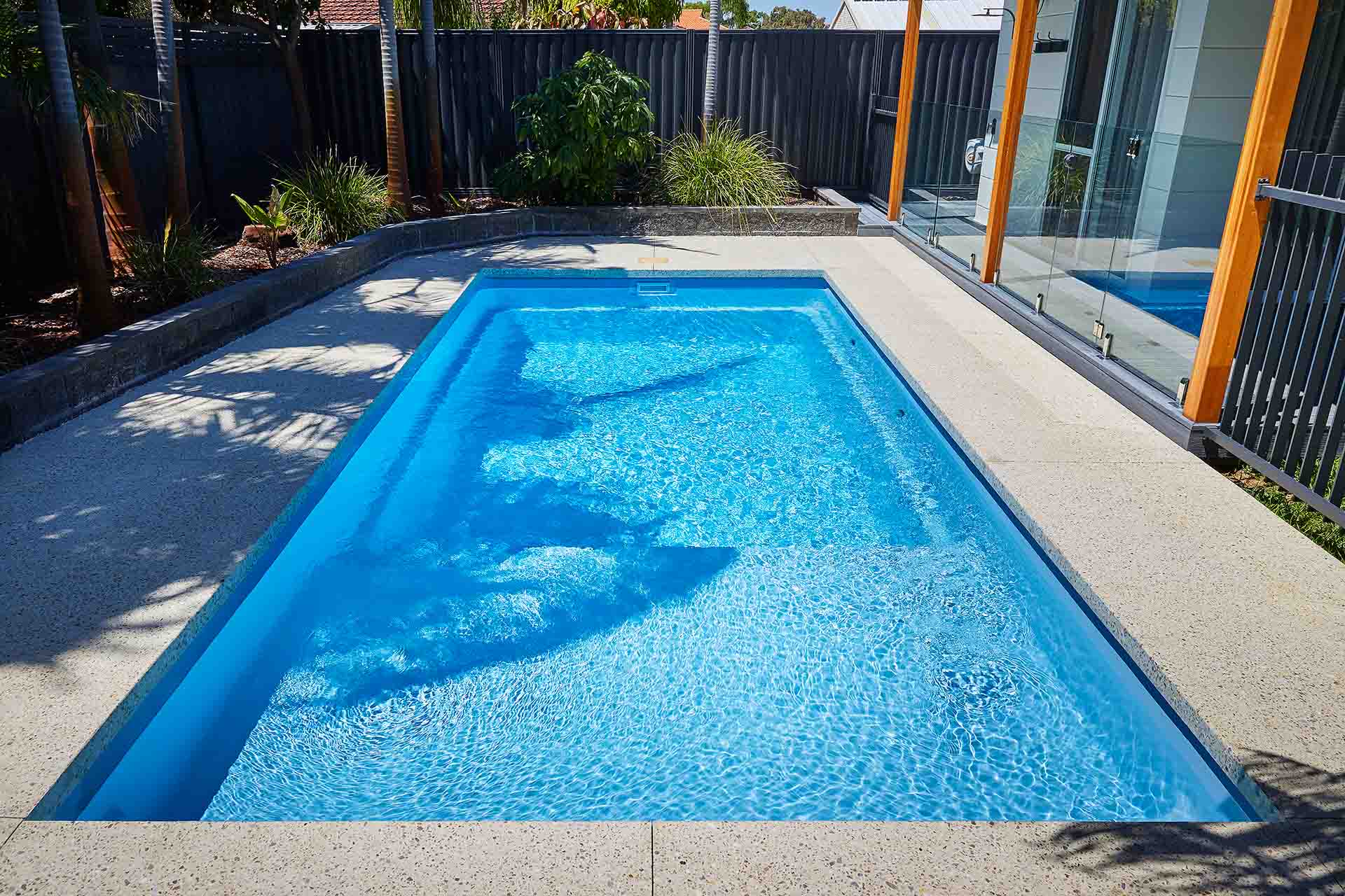 Introducing the Sunseeker Slimline from Barrier Reef Pools’ extensive pool range. This pool showcases our stunning Sky Blue Shimmer colour. Its simplistic and clean design offers a perfect blend of functionality and style, featuring a full-length step for easy access and a spacious splash deck ideal for relaxing with family and friends or creating a fun-filled kids play area. With recessed steps, the Sunseeker Series provides an uninterrupted swimming experience so you can spend more time enjoying the pool and having a splash!